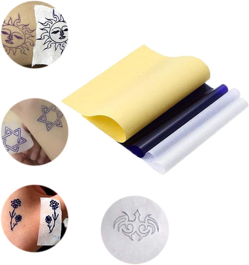 El Papel Transfer Tattoo es un producto diseñado para ser utilizado en tiendas de tatuajes, por artistas, profesionales del tatuaje y principiantes. Este papel de transferencia de plantillas de tatuajes tiene un tamaño aproximado de A4 (29,7 cm x 21 cm) y viene en colores blanco, amarillo y azul oscuro.
