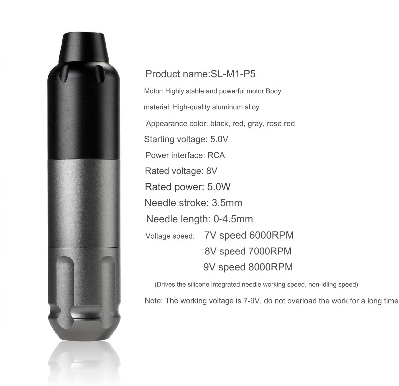 – El bolígrafo de tatuaje está equipado con un motor potente y de alta estabilidad para un rendimiento suave y consistente.
