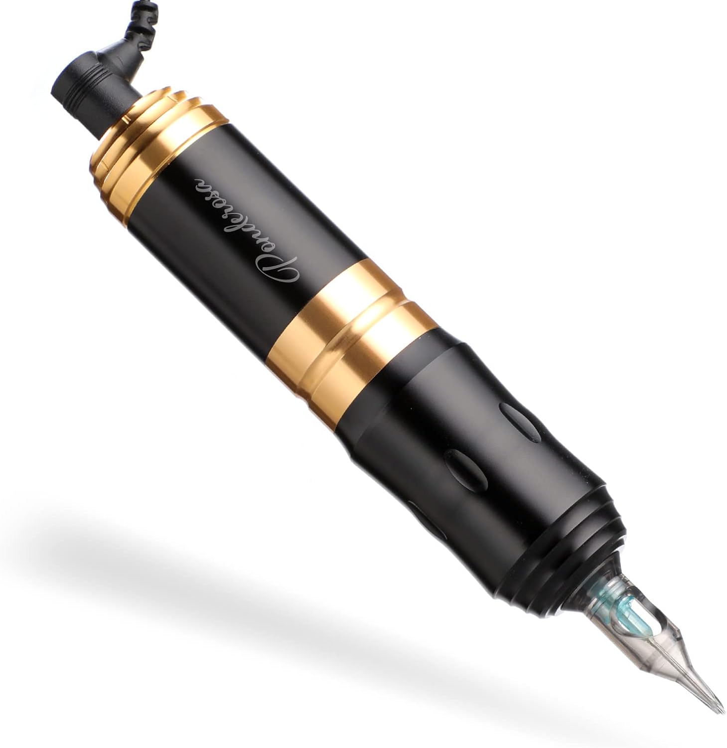 Una de las ventajas de este kit es que la pluma de tatuaje rotativo Stigma es buena tanto para forro como para sombreado. Tiene un voltaje de trabajo de 6-11V y un par máximo tolerable de 189.3g.cm. La superficie está esmerilada, el golpe de la aguja es de 0-4.5 mm, la longitud de la aguja es de 3.5 mm y la interfaz RCA.