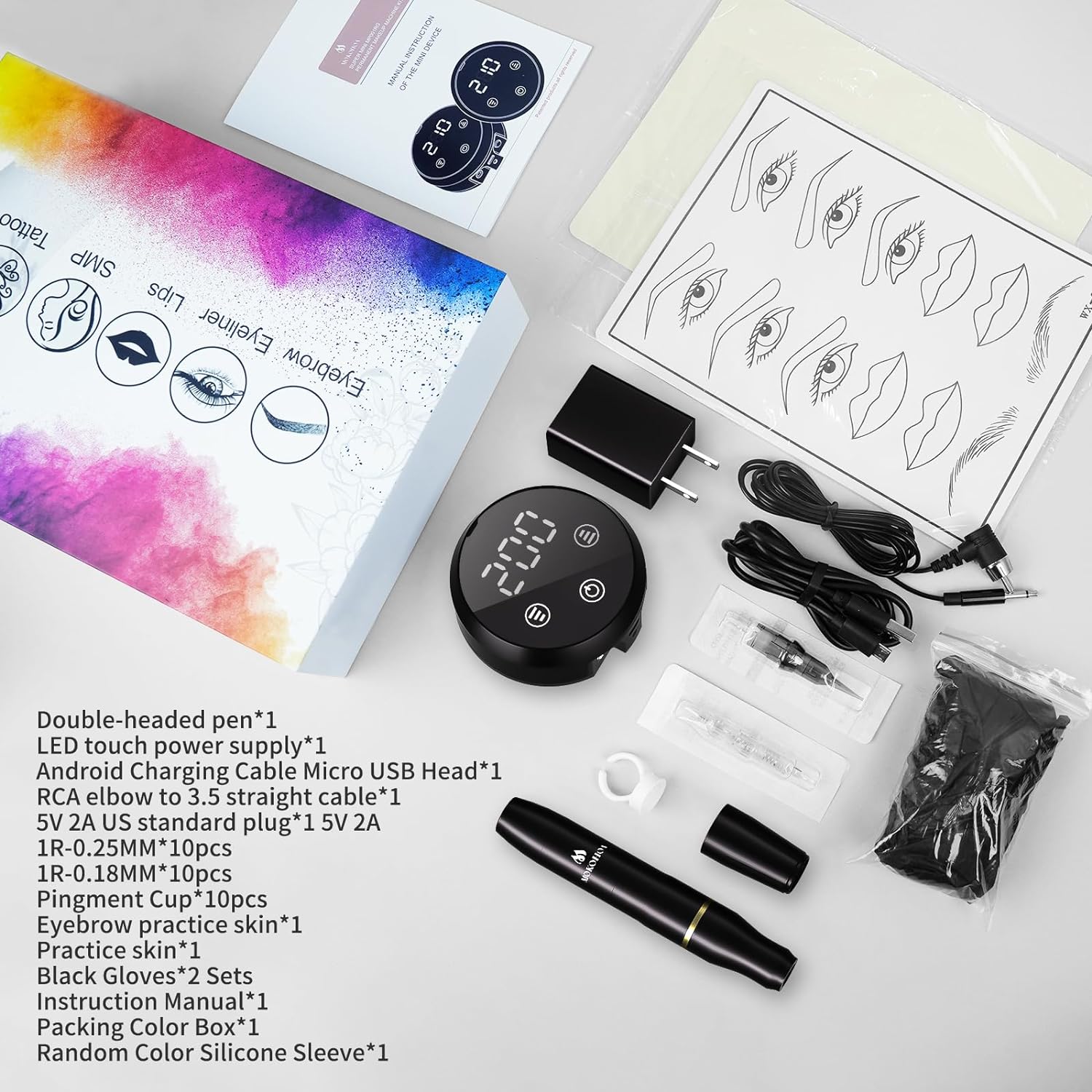 Sí, este kit incluye una fuente de alimentación inalámbrica, 10 agujas de tatuaje 1R-0.25 y 10 agujas de tornillo 1R-0.18 para que puedas comenzar con el proceso de maquillaje permanente de inmediato. -