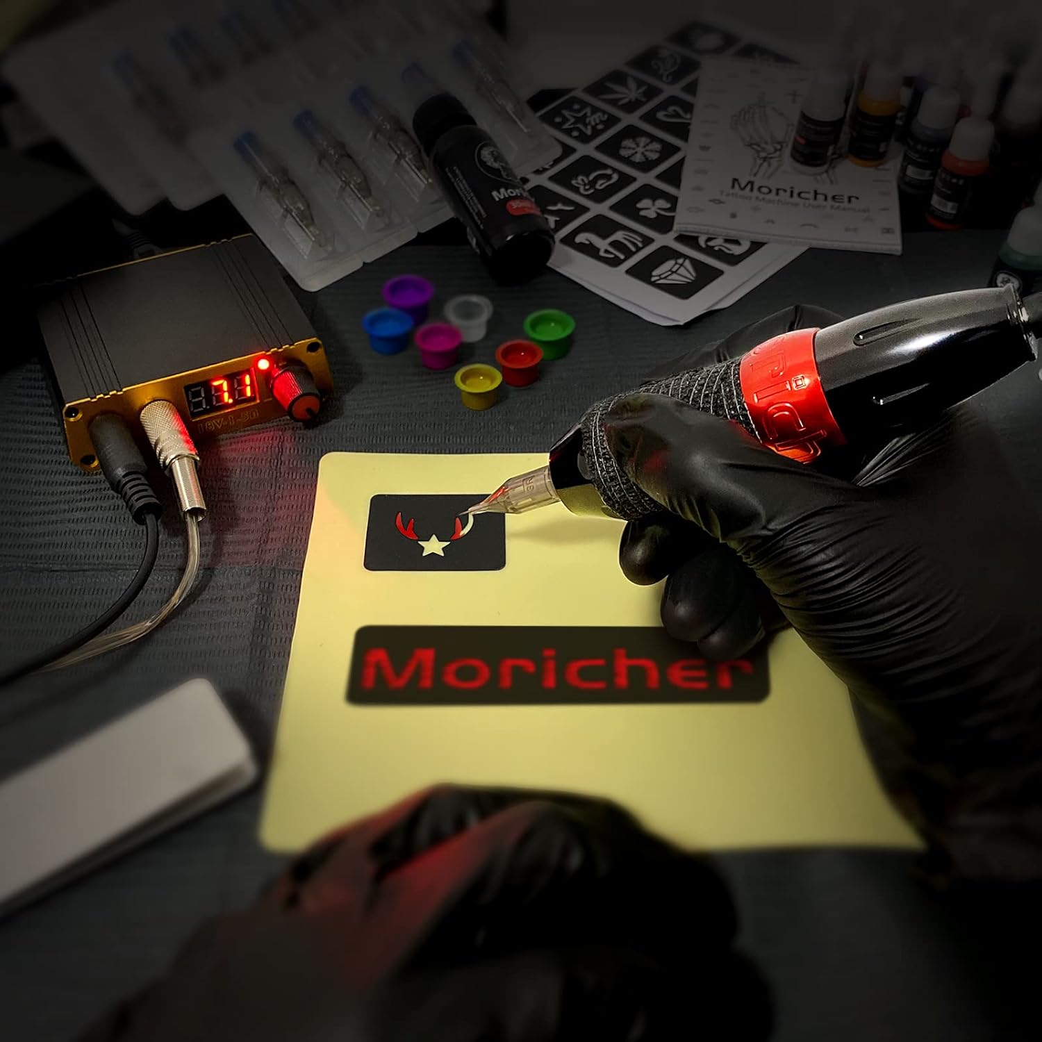 Kit para tatuaje profesional Moricher: Incluye máquina de tatuar, pluma, tintas y cartuchos – ¡Listo para crear arte en la piel!