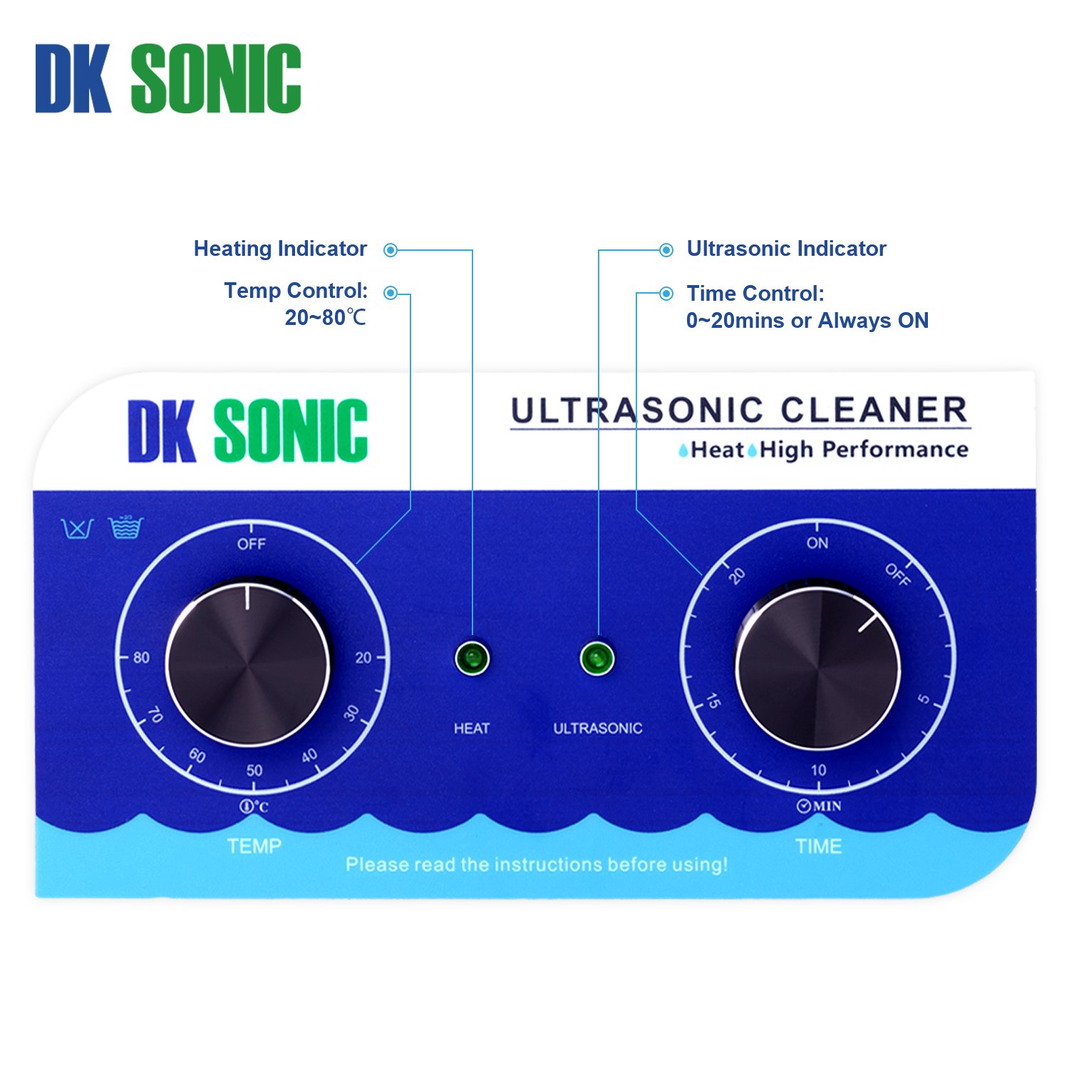 - El Limpiador Ultrasónico Profesional DK SONIC permite ajustar el tiempo de limpieza entre 0 y 20 minutos, así como la temperatura entre 20 y 80℃. Además, cuenta con una función de calentamiento que se detiene automáticamente cuando la temperatura alcanza el valor preestablecido.