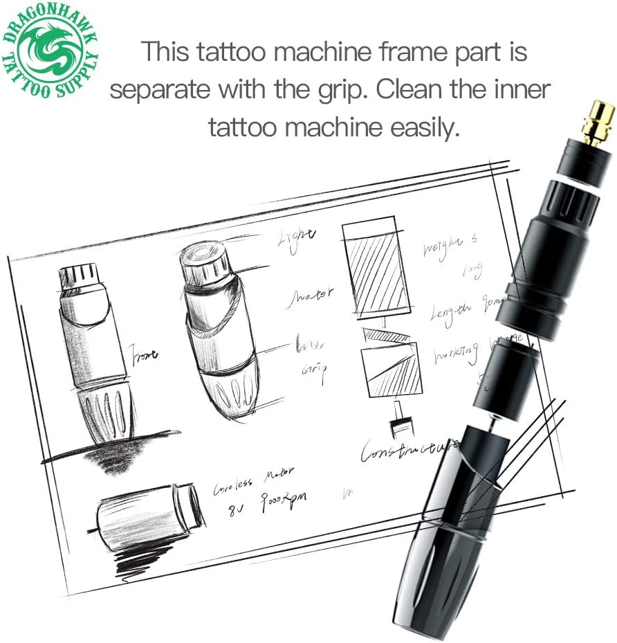 Además, la máquina de tatuaje es muy fácil de dominar gracias a su peso ligero de 117 gramos y la conexión de Cable RCA que funciona de manera suave y silenciosa. esta máquina de tatuaje es ideal para artistas que buscan un equipo de alta calidad y fácil de usar para realizar tatuajes con precisión y comodidad.