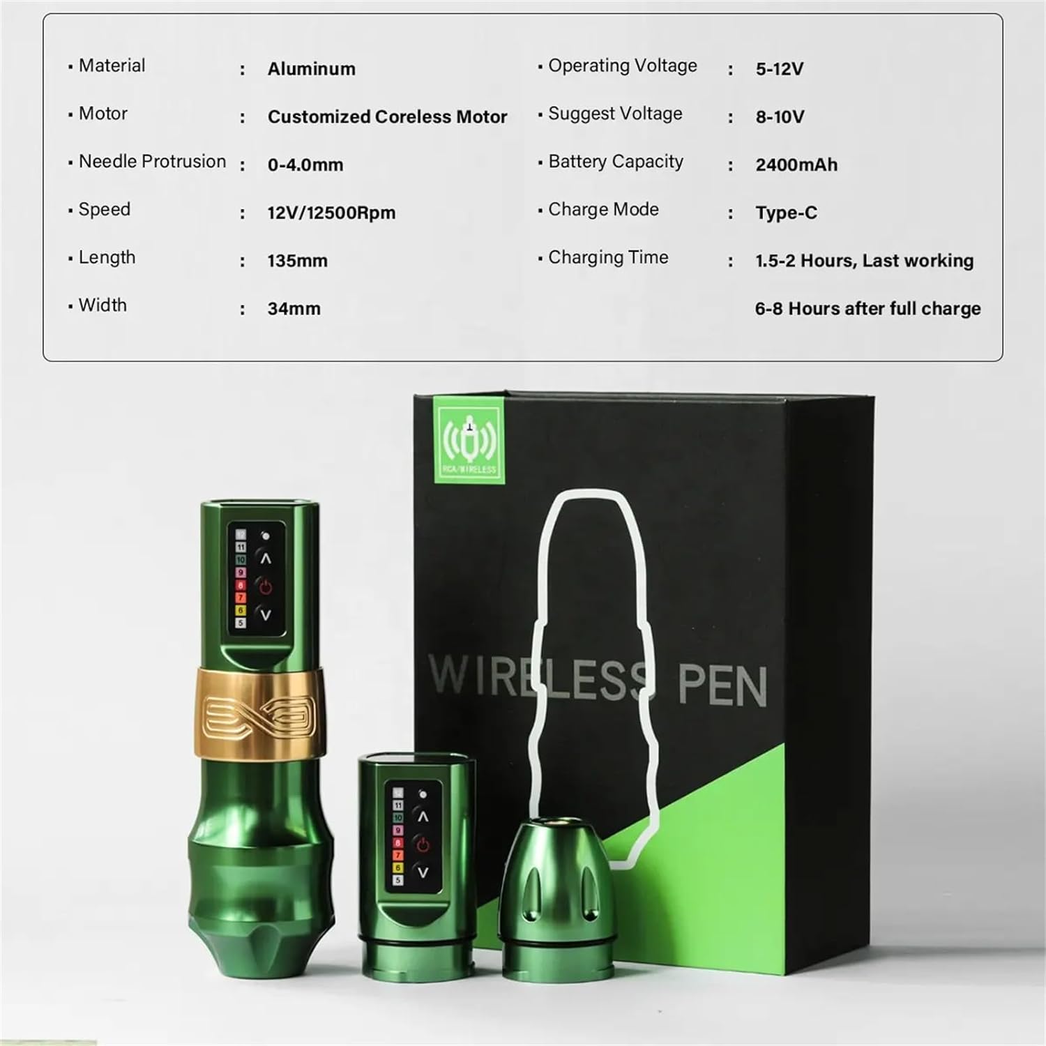 - Bolígrafo de tatuaje inalámbrico con batería de litio y modo dual RCA