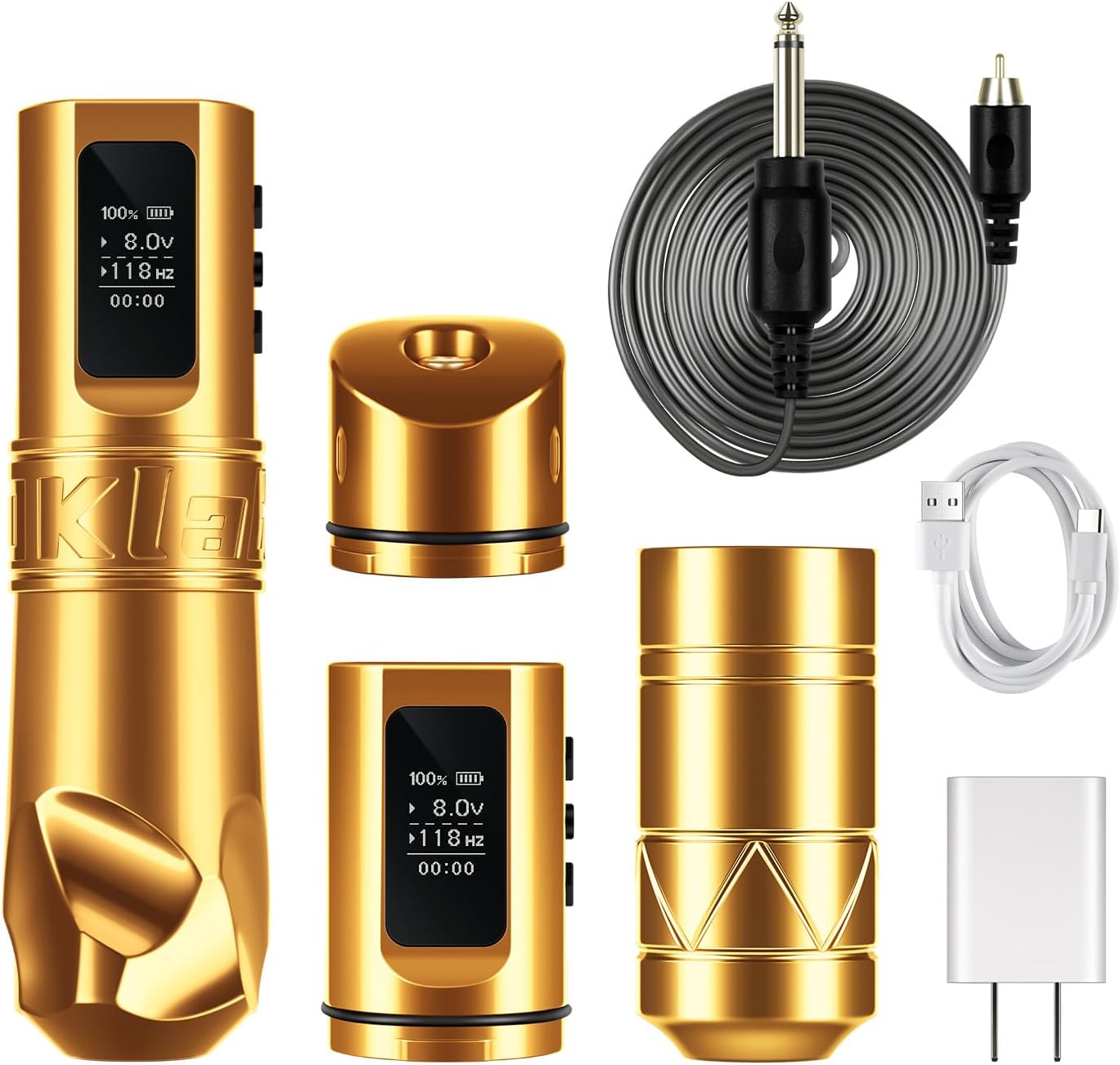 Pluma de tatuaje profesional: máquina inalámbrica con batería recargable en color dorado