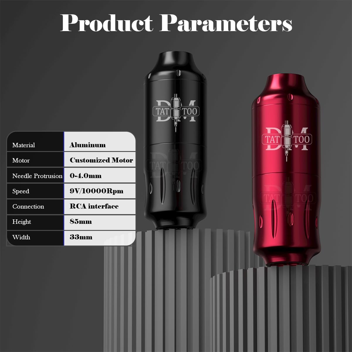 Fabricada a mano con aluminio duradero, esta pluma de tatuaje es ligera pero robusta, garantizando un rendimiento duradero. El motor especializado funciona a una velocidad de 9V/1000 rpm, proporcionando una salida constante y fiable para tareas de revestimiento y sombreado. Además, la protuberancia de aguja ajustable de 0-4.0 mm permite realizar detalles precisos, brindándote el control necesario para diseños intrincados.