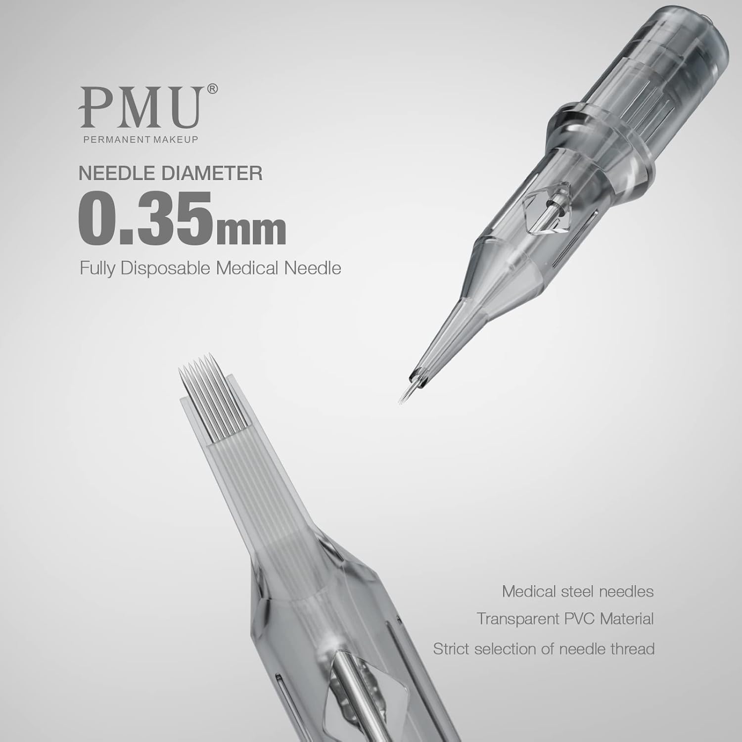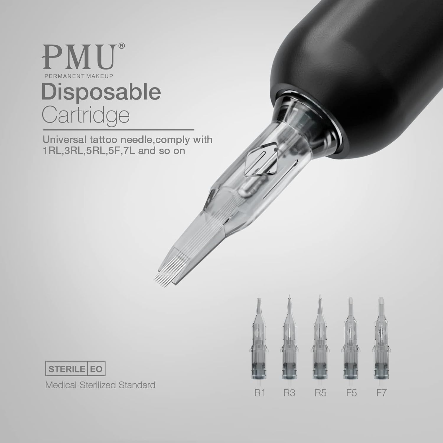 Los cartuchos de agujas PMU Permanent Makeup ofrecen una excelente calidad y seguridad para realizar tatuajes estéticos de forma profesional. Disponibles en 5 tamaños diferentes (1201RL, 1203RL, 1205RL, 1205F y 1207F), cada tamaño se envía en una caja de 15 unidades para garantizar un suministro constante.