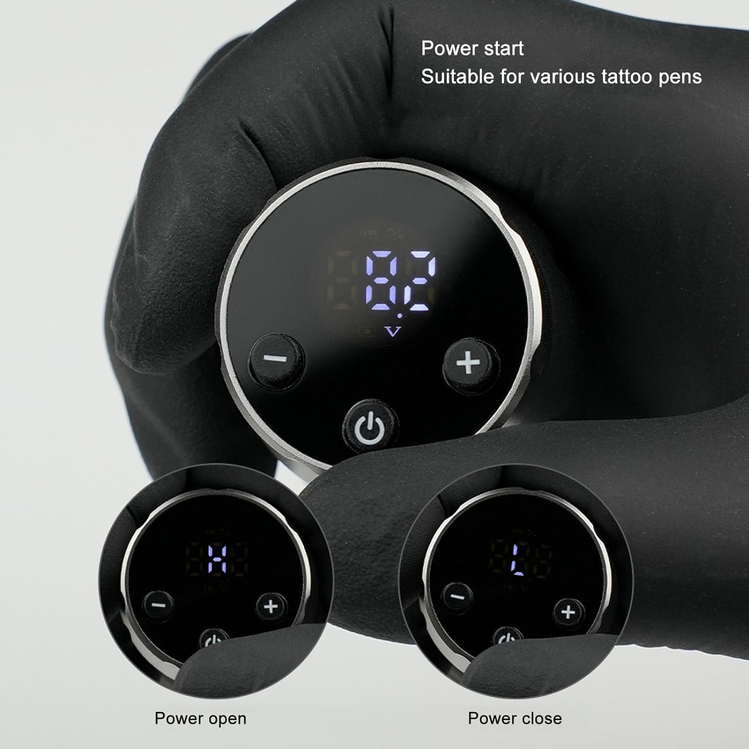 El rango de voltaje ajustable es de 4-12 V con una precisión de 0,1 V, lo que permite adaptarse a diferentes técnicas de tatuaje y partes del cuerpo.