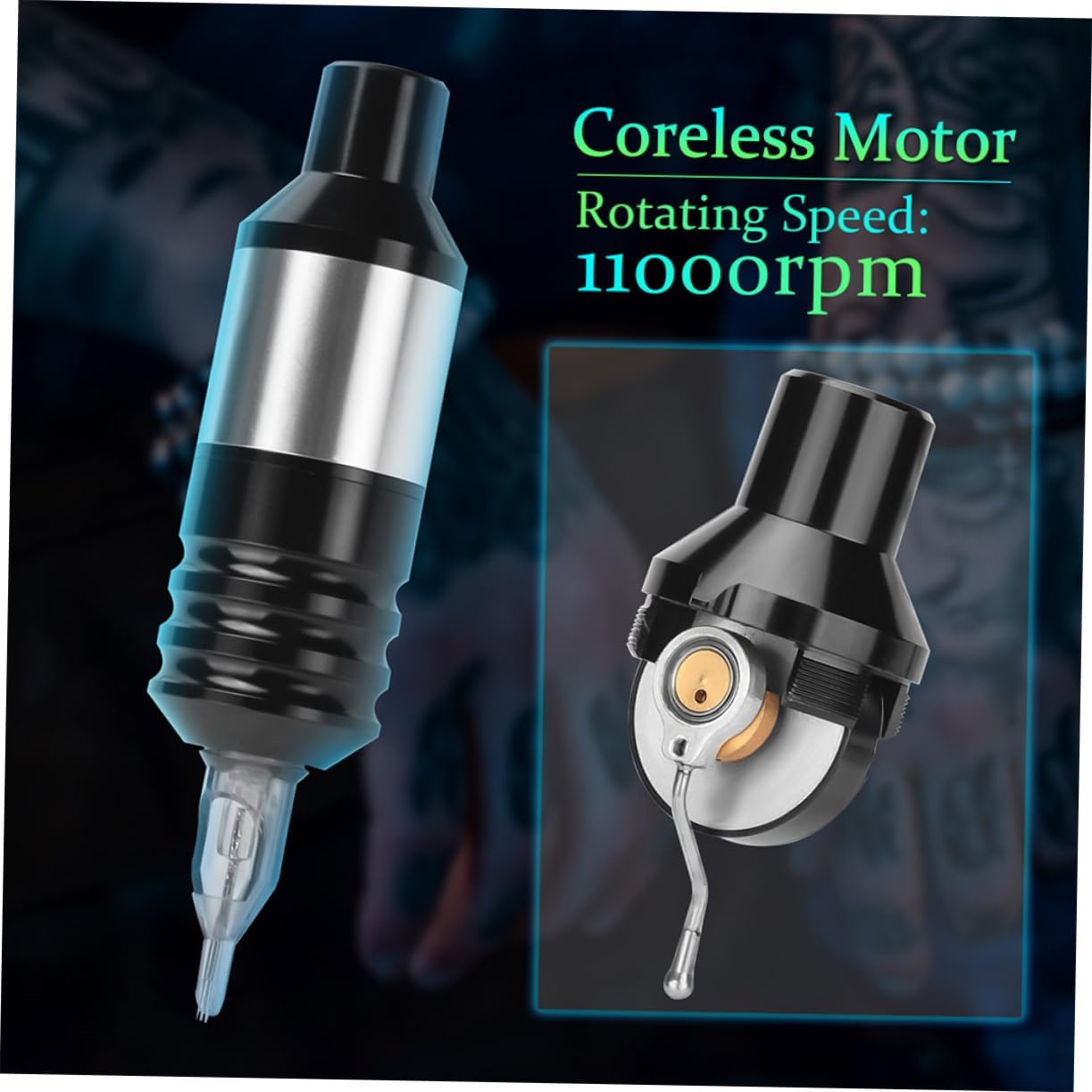 La velocidad de rotación de este bolígrafo es de 12v 11000r/m±10%, lo que garantiza líneas precisas y una aplicación suave. Además, su voltaje de trabajo de 5-8v lo hace versátil y compatible con diferentes tipos de agujas.