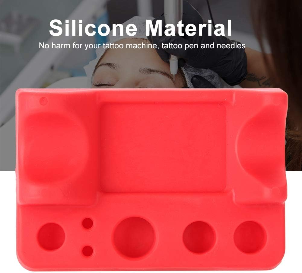 Está fabricado con material de silicona de alta calidad, lo que garantiza que no dañará tu máquina de tatuaje, bolígrafo de tatuaje y agujas. Su diseño estructurado con círculos de diferentes tamaños y formas de rectángulo y arco te permite sostener diferentes herramientas de manera organizada y fácil de acceder.